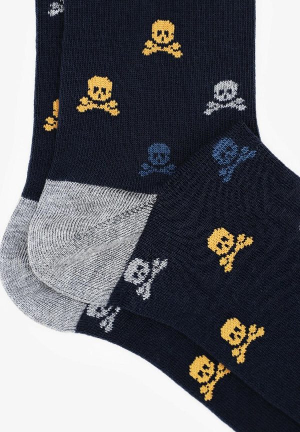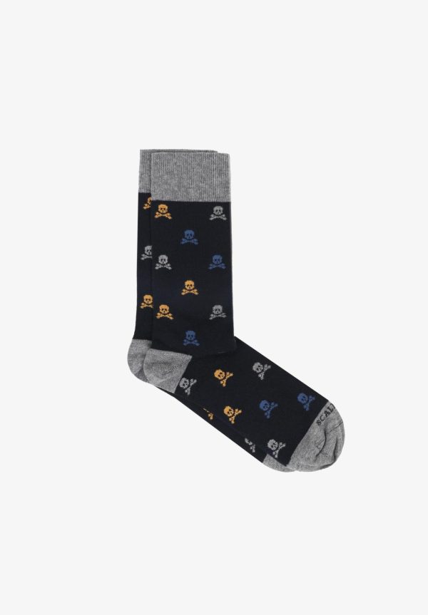 Calcetines con print de calaveras all over confeccionados en tejido de algodón elásticos. Caña media.