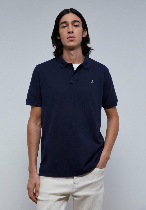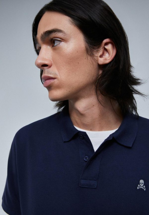 Hombre Scalpers Polos | Polo Básico Calavera Contraste Navy