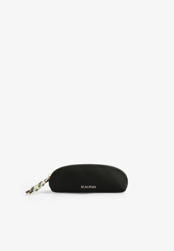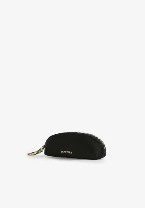 Estuche con detalle en tirador de hilatura metalizada.