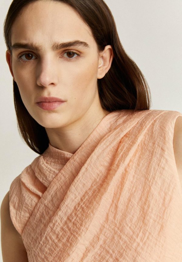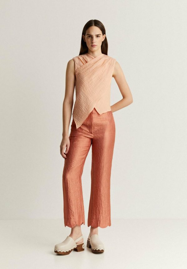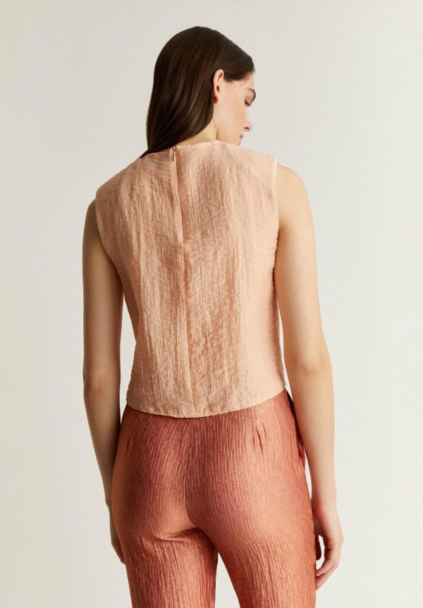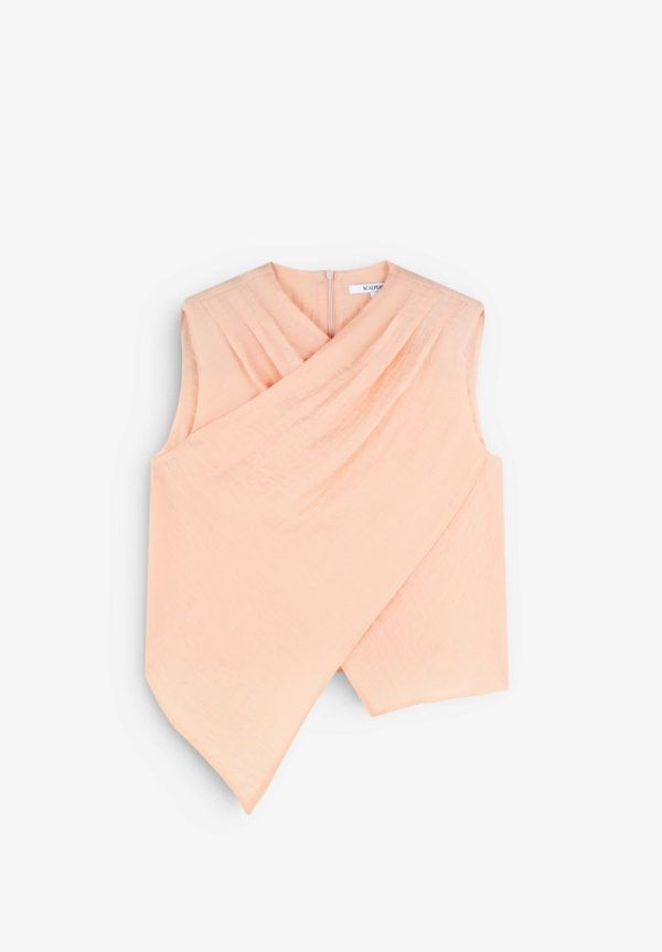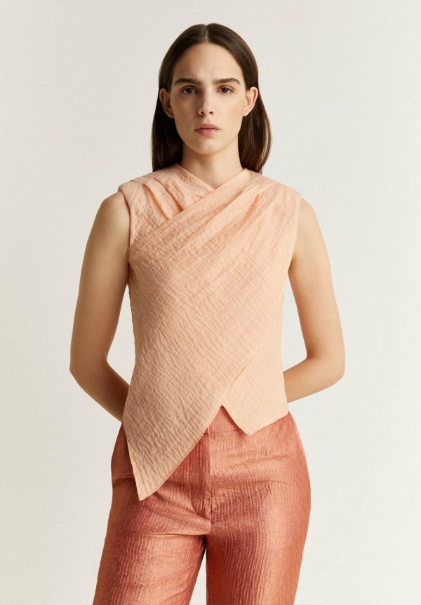 Top cruzado con detalles plisados en hombro.