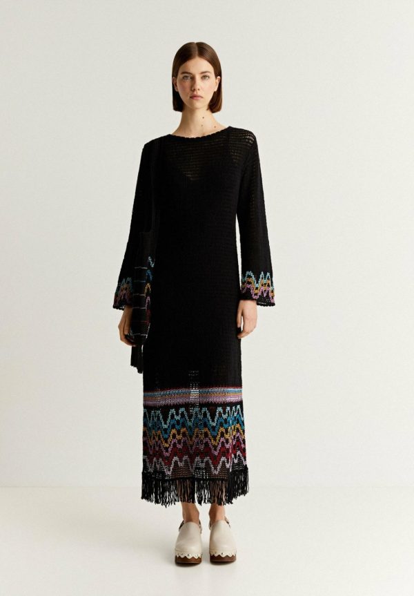 Mujer Scalpers Vestidos Y Monos | Vestido Crochet Detalle Flecos Black