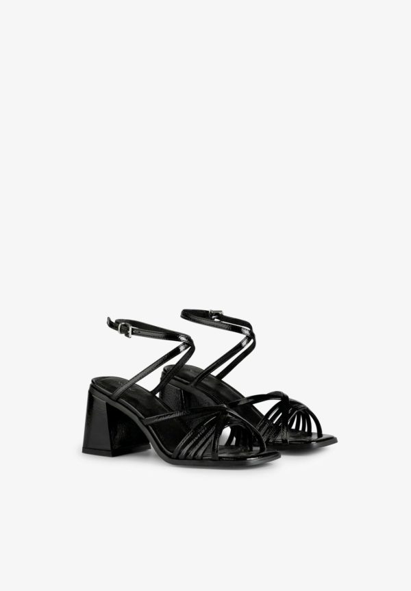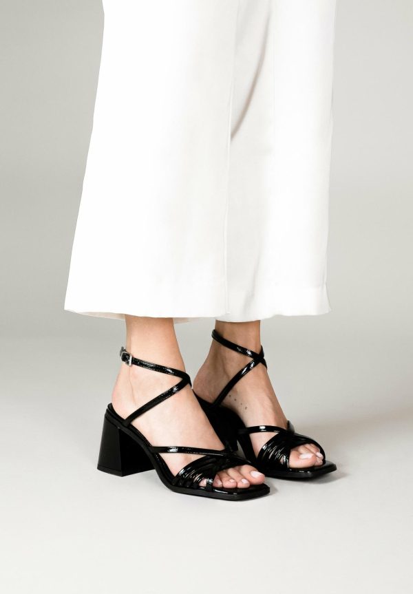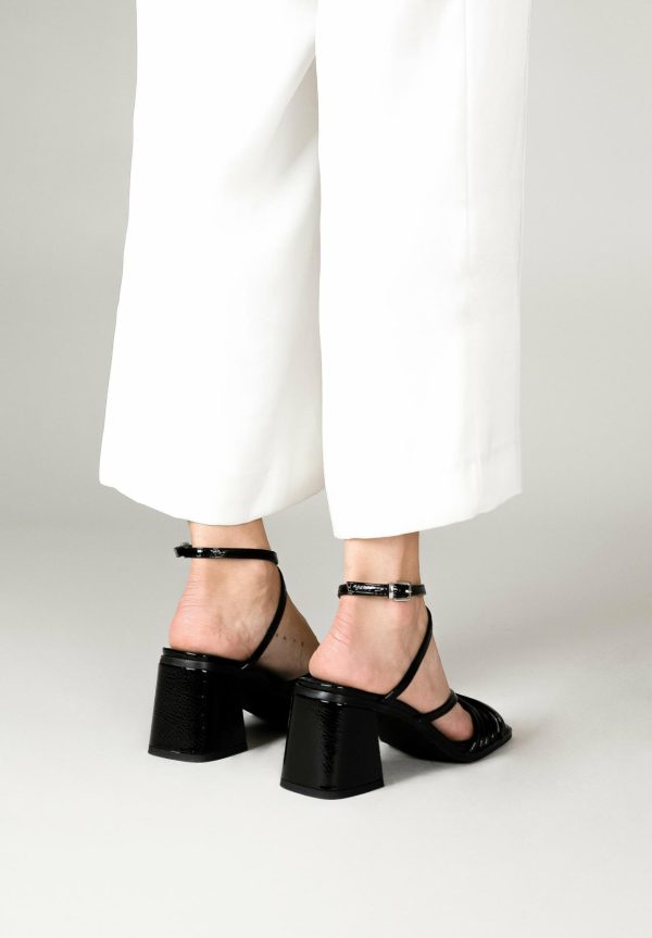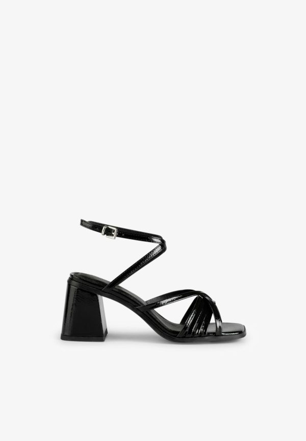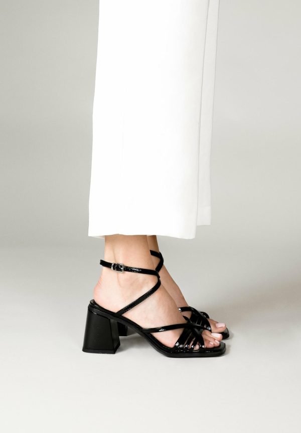 Sandalia tacón Mim Shoes confeccionada en tejido sintético de charol.
