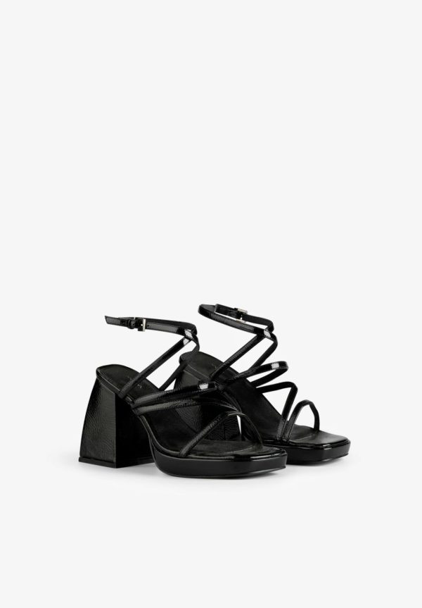 Sandalia tacón Mim confeccionada en tejido 100% piel sintética de charol.
