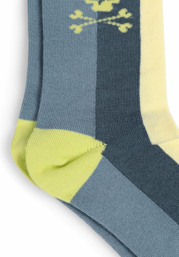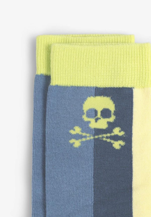 Calcetines de rayas tricolor con detalle de calavera lateral a contraste.