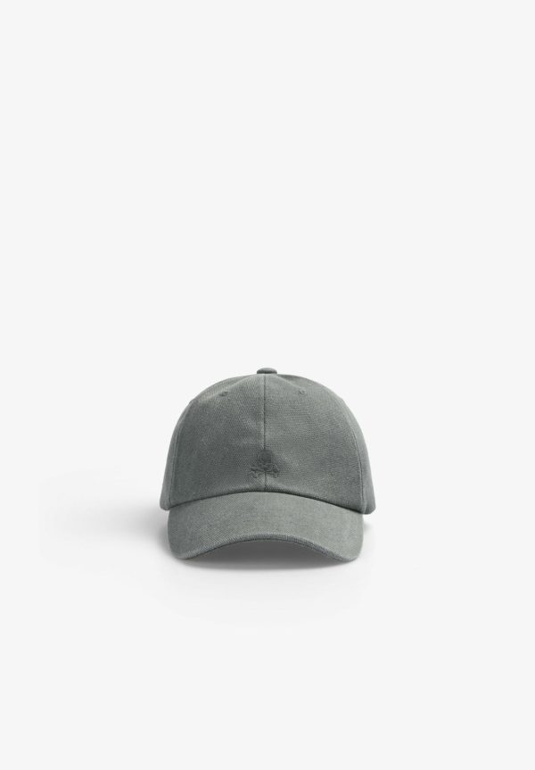 Gorra con detalle de calavera frontal bordada a tono. Confeccionada en mezcla de algodón. Ajustador trasero.