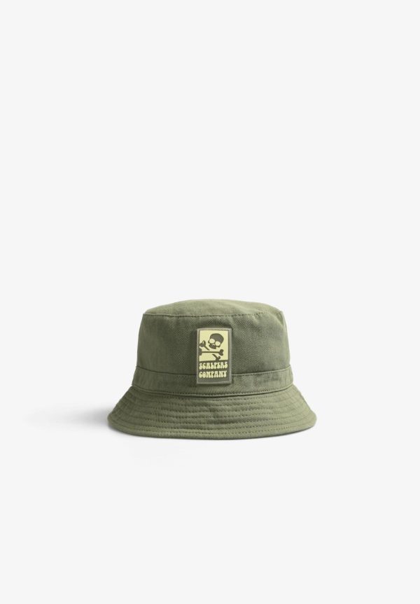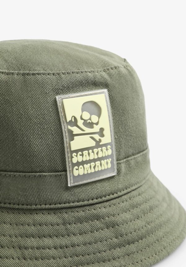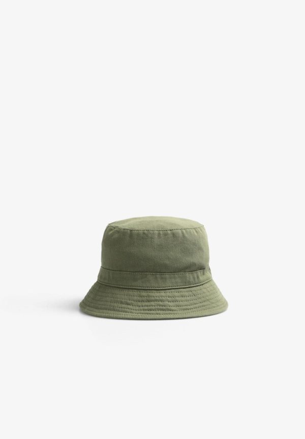 Gorro tipo bucket con detalle de parche engomado en parte frontal.